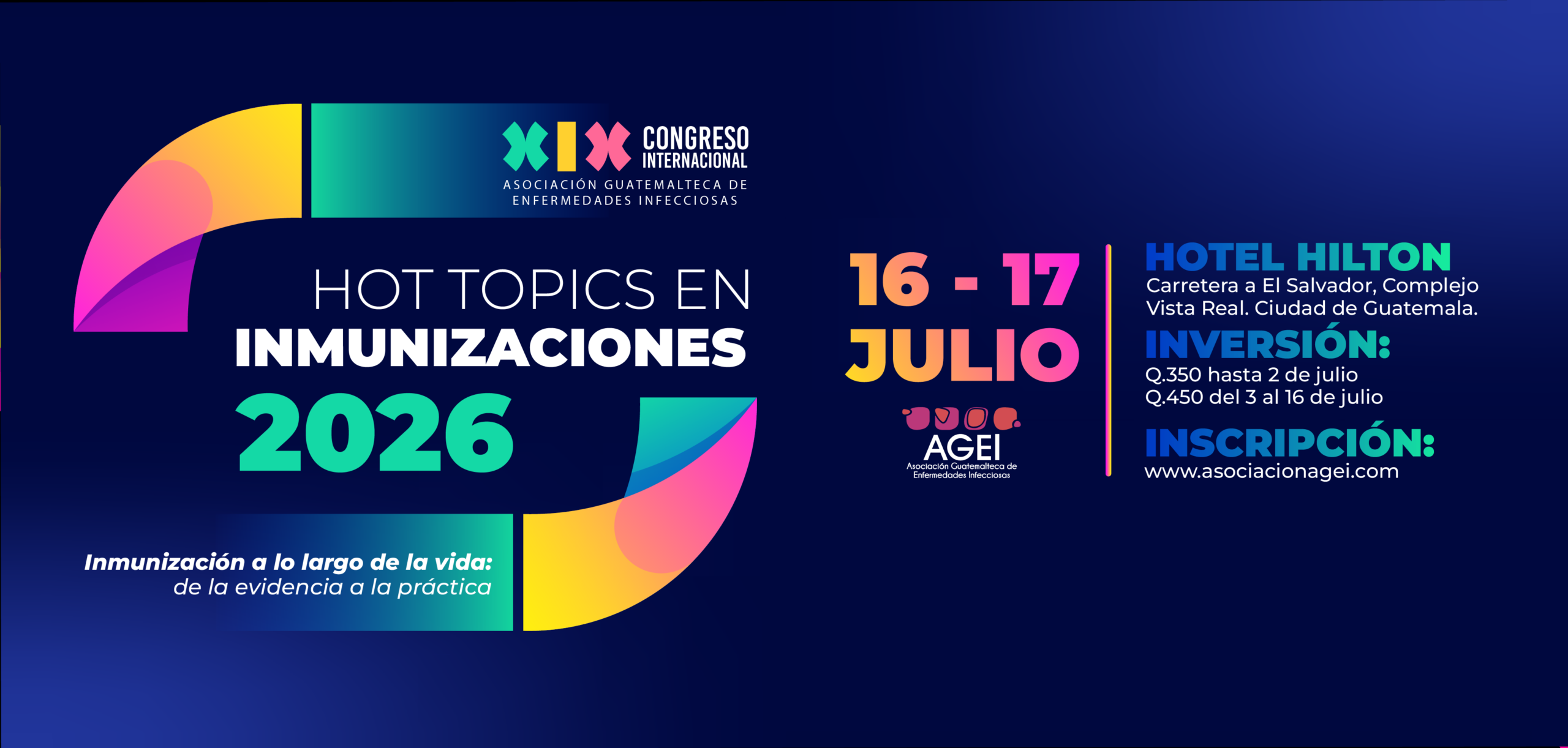 INSCRIPCIONES AL XIX CONGRESO INTERNACIONAL DE LA AGEI Modo Presencial *Cupo limitado 1. Depósito o transferencia de Q.350Banco IndustrialBI MonetarioNombre:Asociación Guatemalteca de Enfermedades InfecciosasNo. 073-002014-62. Adjuntar boletaEnvíenos la imagen de la boleta de depósito rellenando el siguiente formulario Inscripción Presencial Síguenos en nuestras redes sociales: Facebook Instagram